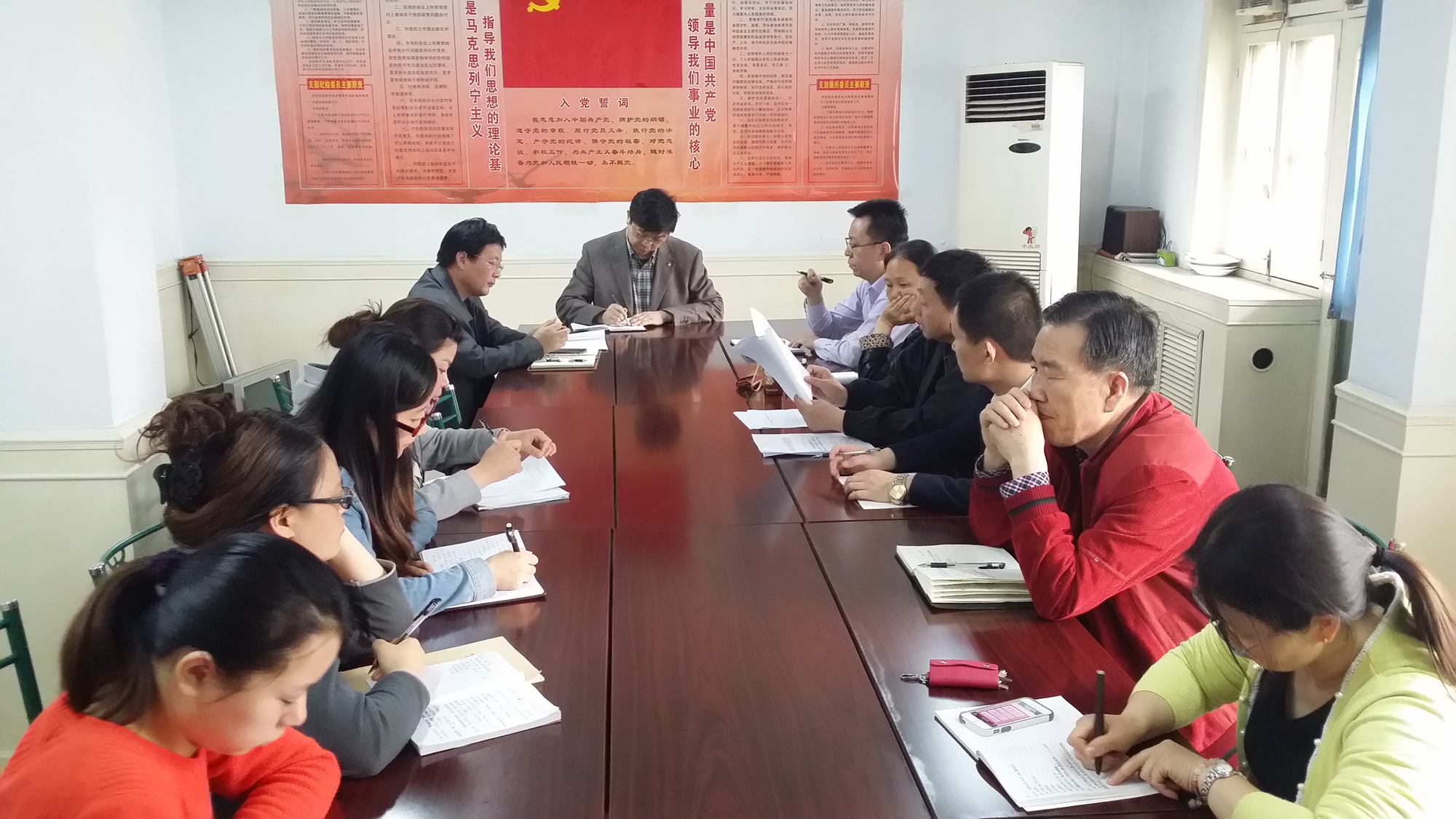 按照《中共西安市水務(wù)局委員會關(guān)于印發(fā)<市水務(wù)局“學(xué)黨章黨規(guī)、學(xué)系列講話,做合格黨員”學(xué)習(xí)教育實施方案>的通知》(市水黨發(fā)〔2016〕16號)要求,我公司于2016年4月22日下午召開“兩學(xué)一做”學(xué)習(xí)教育動員大會。會議由總支書記王長隨同志主持,公司全體黨員參加了會議。